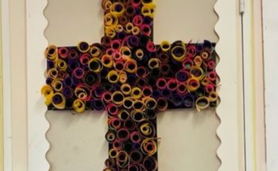 Finally, the children have been helping to create a class cross to be displayed in their classroom. This has allowed them to learn about crosses from other parts of the world - Ethiopia, Bangladhesh, Peru, El Salvador, Japan and Georgia - using a variety of creative processes including quilling and weaving as you can see in the pictures.