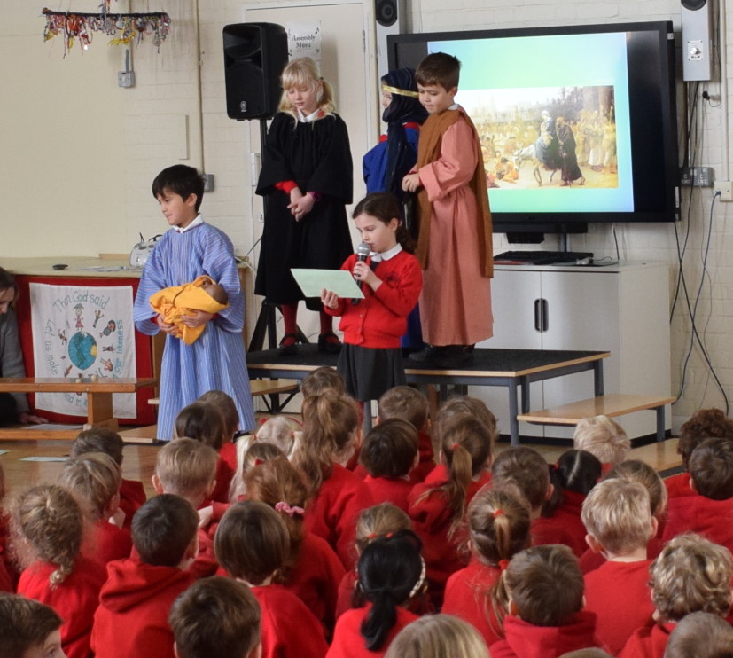 The Year 2 Worship Leaders prepared a Candlemas service for us and told us the story of the Presentation of Jesus from the book of Luke.  In Luke 2:25-35 we are told about a man named Simeon who was at the temple when Mary & Joseph brought Jesus: