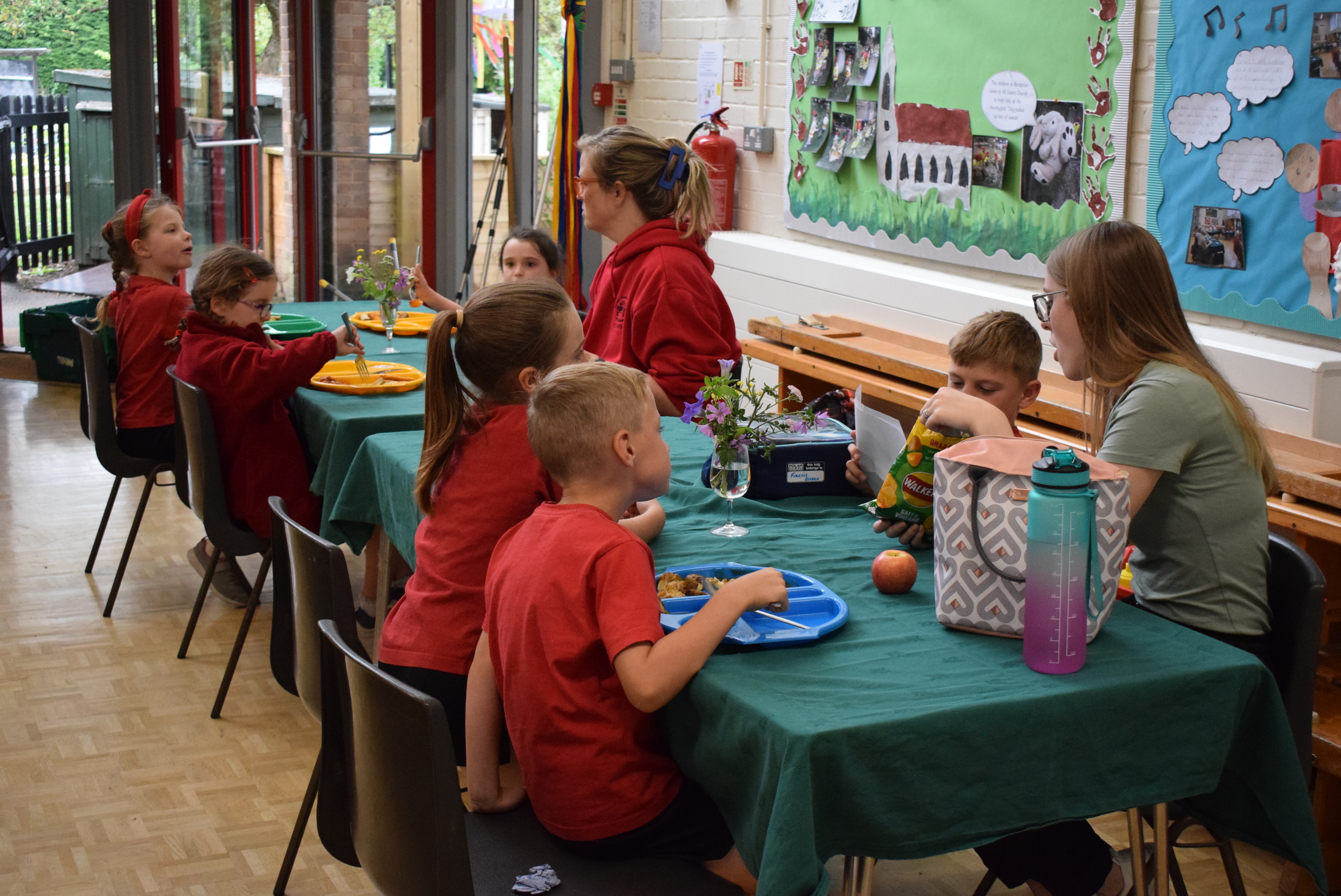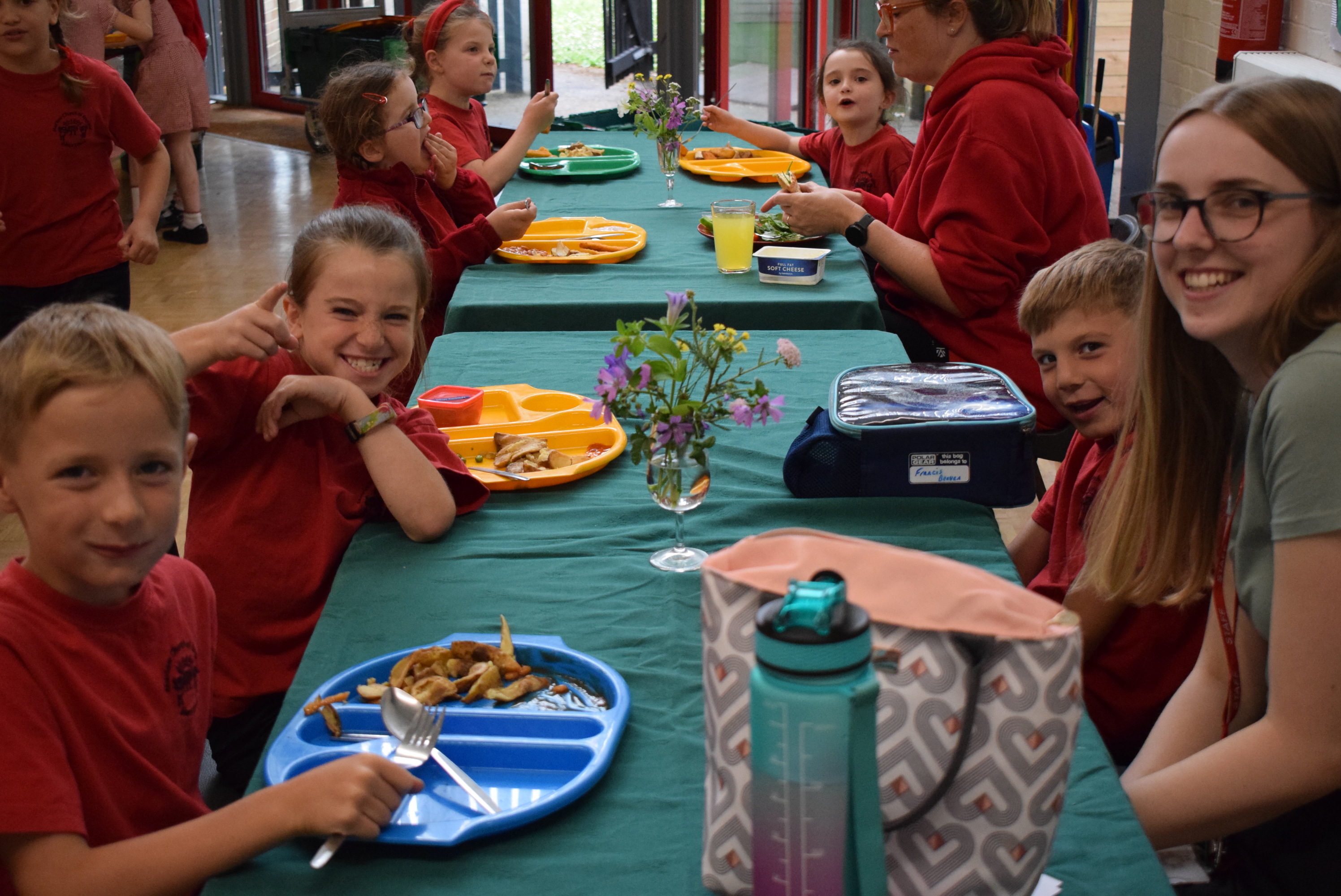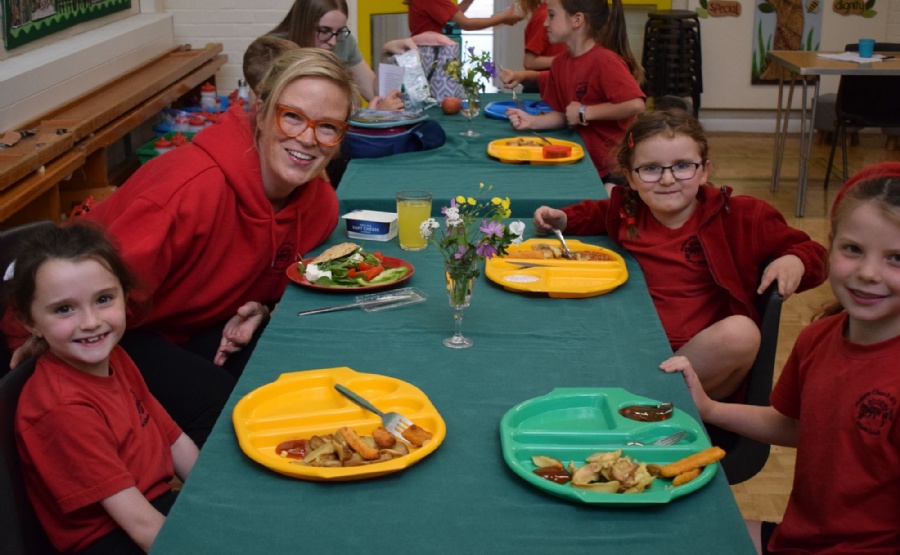 During lunchtime today the two lucky Year 2 winners from the PFA Silent Auction were able to dine with Mrs Browning and Mrs Mitchell. They invited 2 friends each, sat next to their teacher and chatted about lots of things. Mrs Mitchell gave the boys a football quiz while Mrs Browning chatted about favourite colours, food, sport and holidays!
