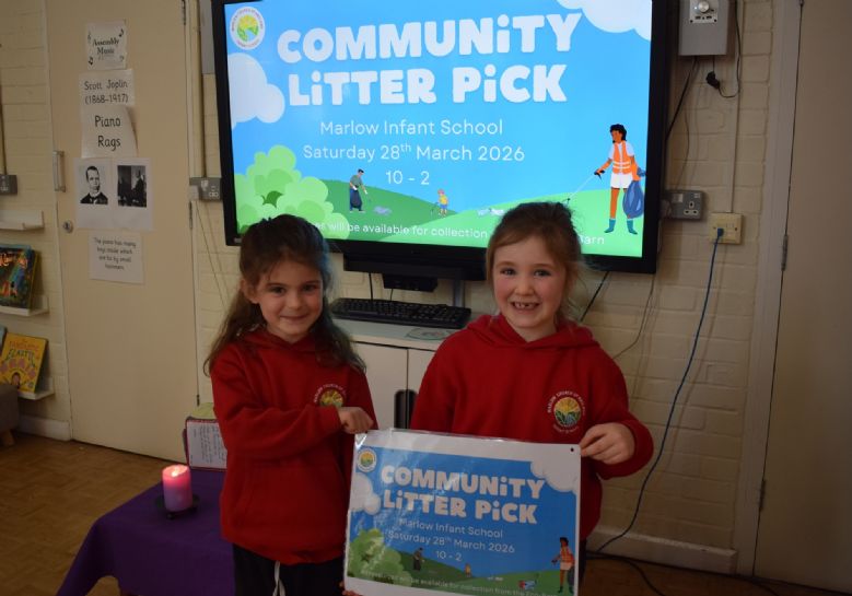 As part of Waste Week in school, today Mr Creese and the Eco Warriors led school worship ahead of the Great British Spring Clean next week. They shared with the rest of the school the impact litter has on the environment, ways we can reduce litter and how Marlow Infants is hosting a Community Litter Pick from 10am-2pm on Saturday 28th March.