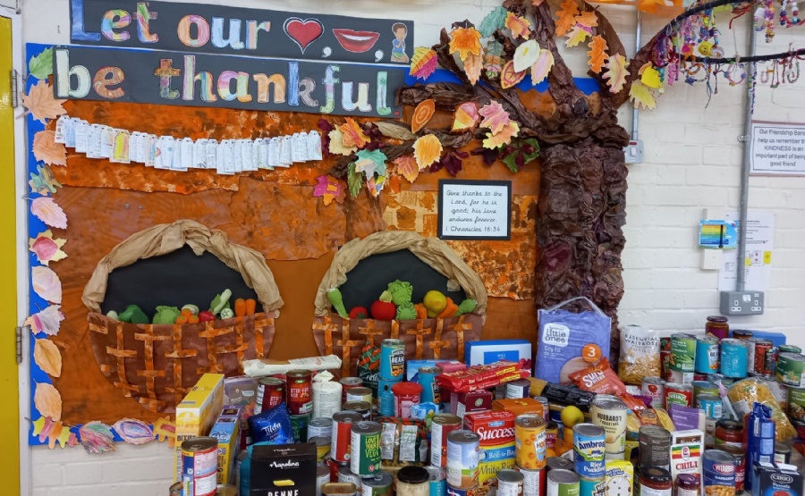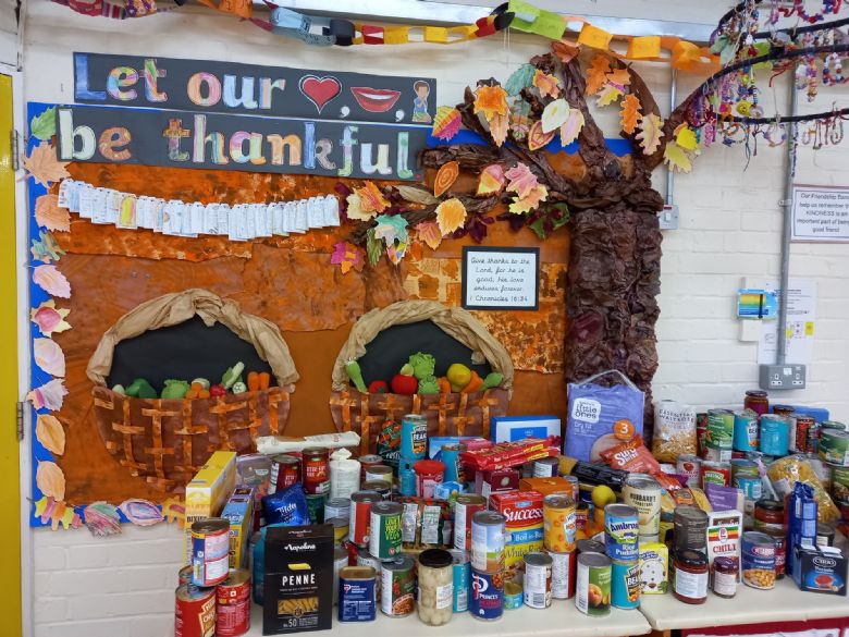 We had a Harvest Collection for the One Can Trust and the hall displays for Harvest were boosted with the addition of a wonderful show of cans and packets kindly donated by our school families.